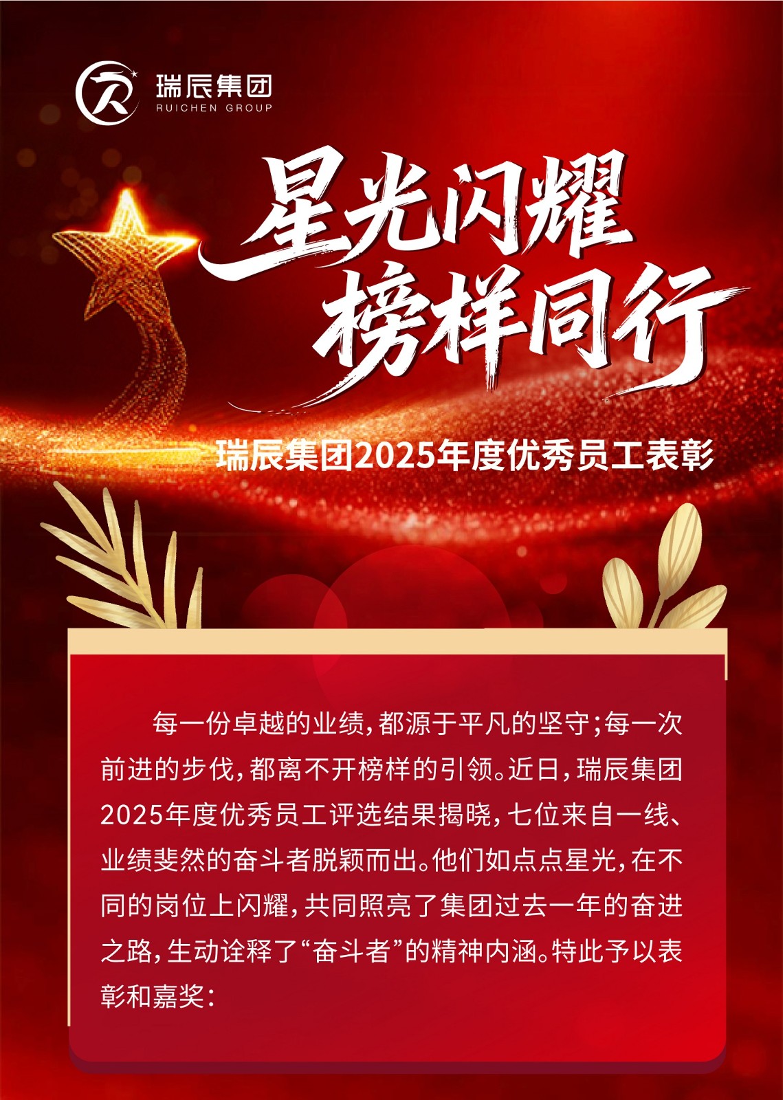 【简讯】星光闪耀,榜样同行——瑞辰集团2025年度优秀员工表彰